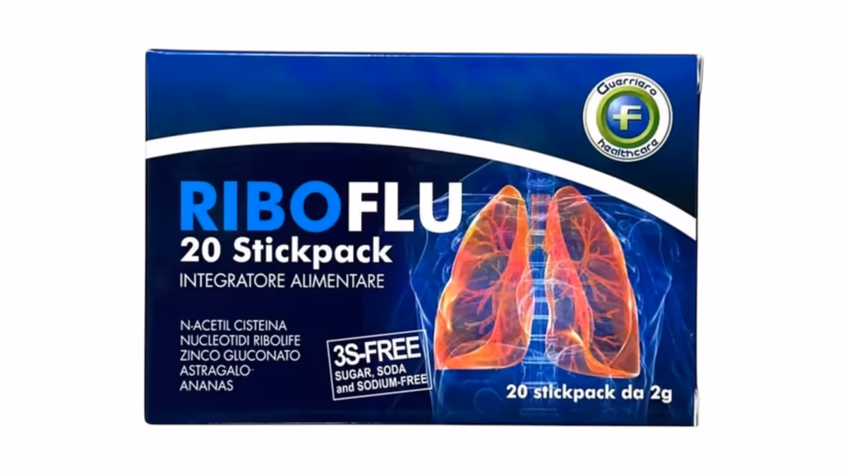 RiboFlu x20 stickpack është një suplement në formë pluhuri, i formuluar për të mbështetur sistemin imunitar dhe rrugët e frymëmarrjes gjatë periudhave të ftohjes, gripit apo lodhjes fizike. Përmban zink (mbështet imunitetin), ekstrakt ananasi (veprim anti-inflamator natyral), acetilcisteinë (fluidifikon sekrecionet), astragalus (tonifikues dhe imunostimulues) dhe nucleotide (ndihmojnë në rigjenerimin qelizor dhe mbrojtjen imunitare). Ideal për përdorim në fazat e para të virozave dhe gjatë rikuperimit.