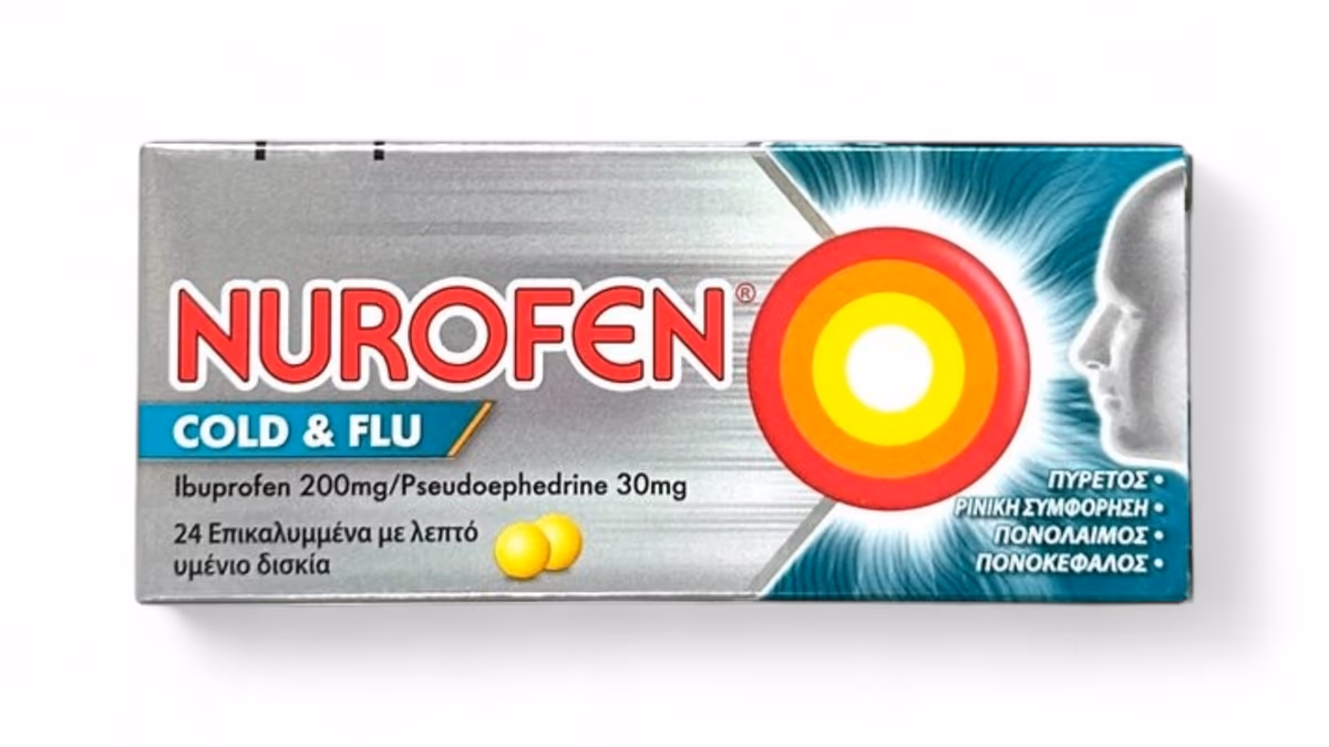 Nurofen Cold & Flu është një kombinim i ibuprofenit, një anti-inflamator jo-steroidal (NSAID) që ndihmon në uljen e dhimbjes, inflamacionit dhe temperaturës, dhe pseudoefedrinës, një dekongjestionant që lehtëson bllokimin e hundëve duke ngushtuar enët e gjakut në mukozën e hundës. Ky kombinim është i përshtatshëm për lehtësimin e simptomave të ftohjes dhe gripit, si dhimbje koke, kongjestion nazal, ethe dhe dhimbje të trupit.