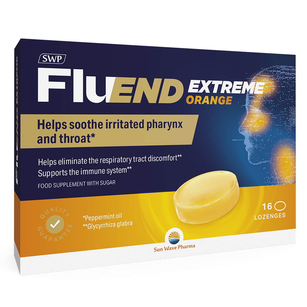Fluend Extreme Mint/Orange x16 lozenges janë tableta për shurim me shije mente ose portokalli, që ndihmojnë në qetësimin e fytit të irrituar dhe japin ndjesi freskie gjatë ftohjes ose ngarkesës së zërit.