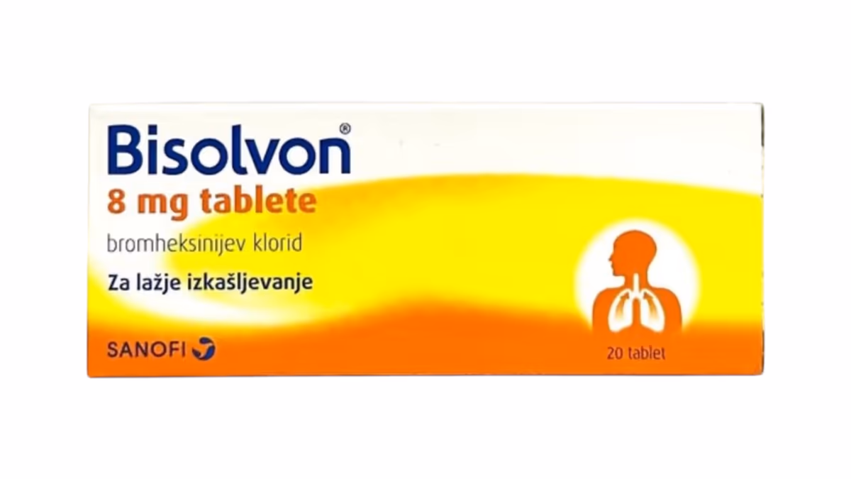 Bisolvon 8 mg x20 tableta është një medikament që përmban substancën aktive **bromheksinë**. Ai përdoret për të lehtësuar kollën dhe për të tretur mukusin në rrugët e frymëmarrjes, duke ndihmuar në pastrimin e mushkërive dhe përmirësimin e frymëmarrjes. Bisolvon është i përshtatshëm për trajtimin e kollës me mukus gjatë infeksioneve të frymëmarrjes si bronkiti.