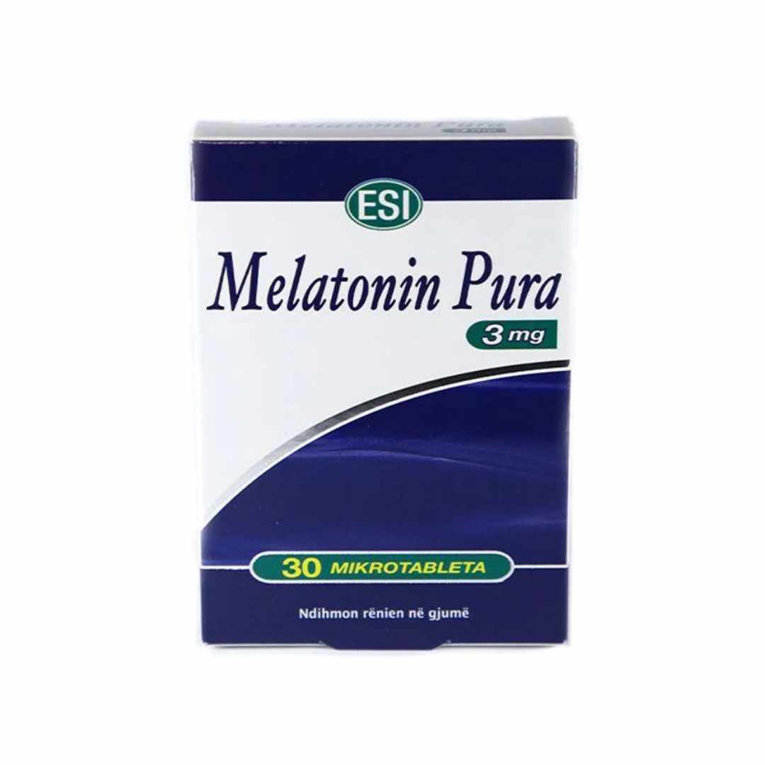 ESI Melatonin Pura 3mg x30 është suplement ushqimor që ndihmon në rregullimin e gjumit dhe përmirëson cilësinë e pushimit, veçanërisht në rastet e pagjumësisë ose jet-lag.