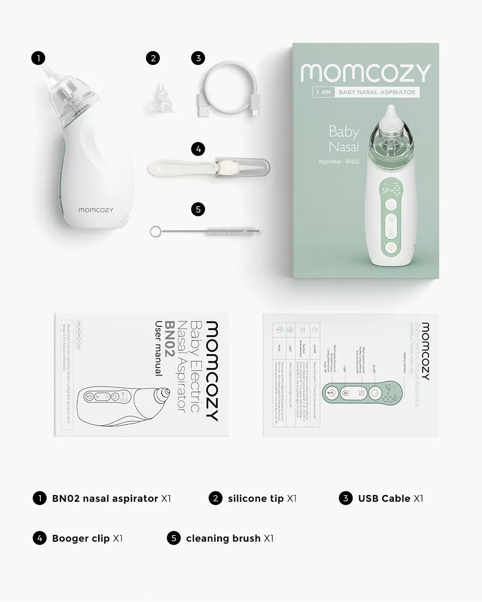 Momcozy Baby Nasal – pajisje për pastrimin e hundës së foshnjës që ndihmon në heqjen e sekrecioneve të tepërta në mënyrë të butë dhe të sigurt, duke lehtësuar frymëmarrjen e foshnjës gjatë ftohjeve ose bllokimeve të hundës.