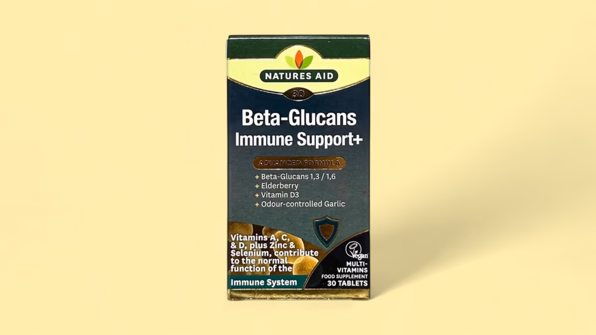 Natures Aid Beta Glucans x30 tablet është një suplement që mbështet sistemin imunitar, duke përdorur beta-glukan nga maja dhe vitamina A, C, D, zink, bakër e selen. I përshtatshëm për vegjetarianë, pa gluten dhe laktozë, merret 1 tabletë në ditë.